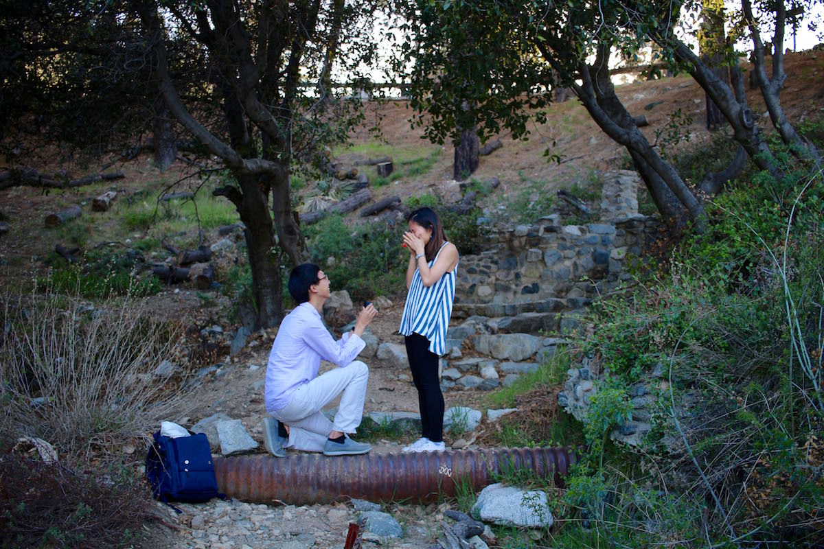 I've been thinking about proposing before she moved out to LA and it was already months into 2016, yikes. I picked up the engagement ring and I couldn't wait to put it on her. Soon later, we went on a little field trip to the mountains of LA and drove around for hundreds of miles looking for the perfect spot. I was too nervous.